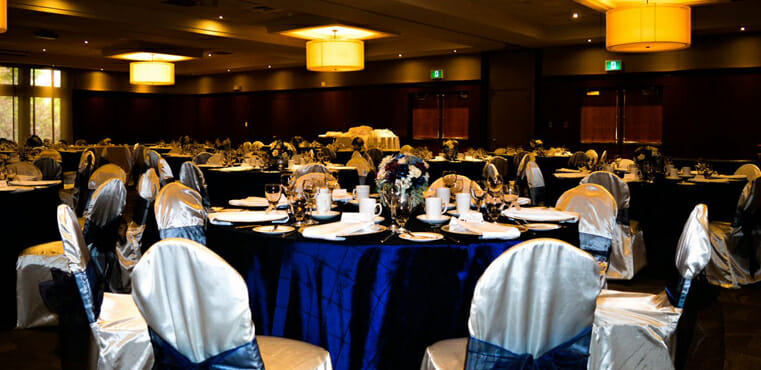 More intimate gatherings are right at home in the Hazelton Room. With large windows overlooking the stunning golf course and allowing plentiful natural lighting. Maximum capacity of 30 guests and is an excellent choice for smaller gatherings such as rehearsal dinners and bridal parties.