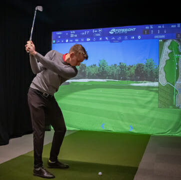 The Gallagher indoor golf studio includes 3 simulated golf bays, a state-of-the-art coaching studio, practice putting green, a full-service bar (The Bunker), and a lounge area.